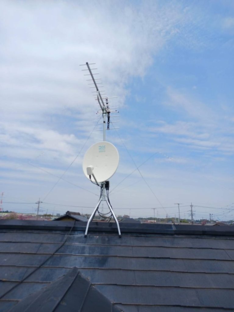 強風で倒れてしまいお困りでしたので、早急に対応し新しい地デジアンテナとBSアンテナに交換しました💪