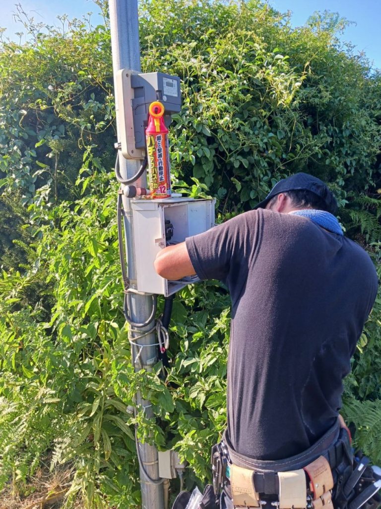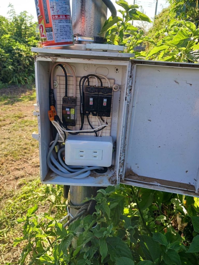 プレハブ小屋なんですが、草刈り中に誤って草刈り機で配線を切断してしまったそうです!
