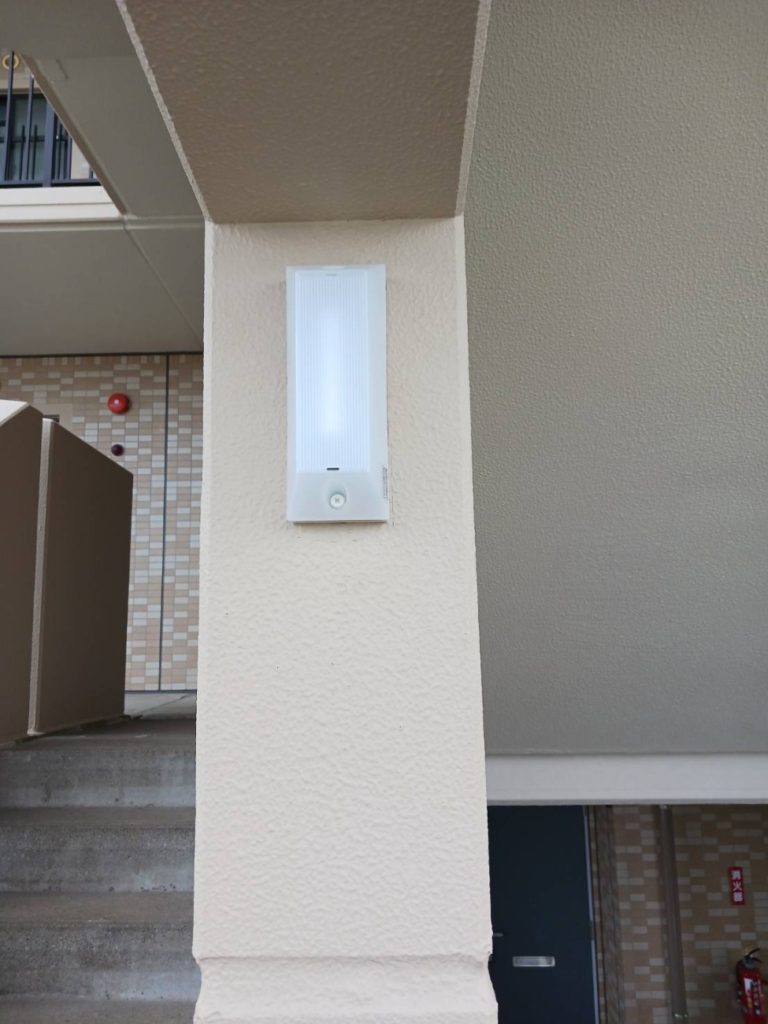 アパートの共用の照明が割れていて、電気も点灯しなくなっていたので新しい照明に交換させていただきました💡